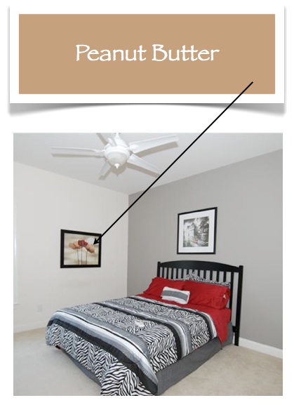 You can see the color is already in the artwork that was chosen so you know this homeowner already likes the color. How fun is it knowing you have “Peanut Butter” on your walls?